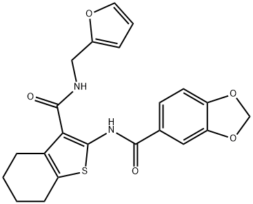 - Synonyms: N-[3-(furan-2-ylmethylcarbamoyl)-4,5,6,7-tetrahydro-1-benzothiophen-2-yl]-1,3-benzodioxole-5-carboxamide 1,3-Benzodioxole-5-carboxamide, N-[3-[[(2-furanylmethyl)amino]carbonyl]-4,5,6,7-tetrahydrobenzo[b]thien-2-yl]-