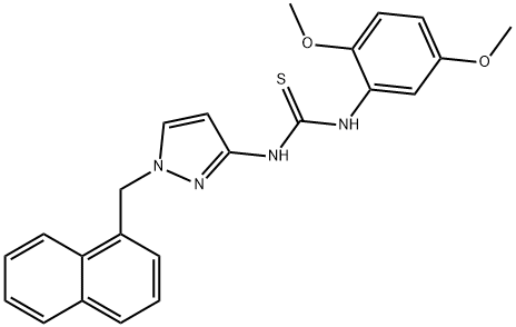 - Synonyms: 1-(2,5-dimethoxyphenyl)-3-[1-(naphthalen-1-ylmethyl)pyrazol-3-yl]thiourea Thiourea, N-(2,5-dimethoxyphenyl)-N'-[1-(1-naphthalenylmethyl)-1H-pyrazol-3-yl]-