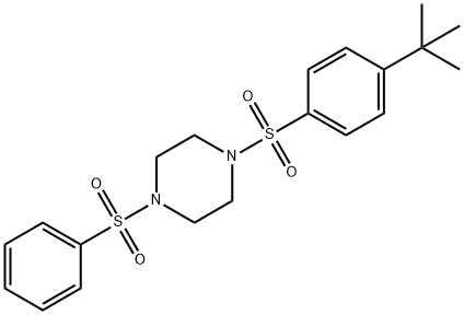 - Synonyms: 1-(benzenesulfonyl)-4-(4-tert-butylphenyl)sulfonylpiperazine Piperazine, 1-[[4-(1,1-dimethylethyl)phenyl]sulfonyl]-4-(phenylsulfonyl)-
