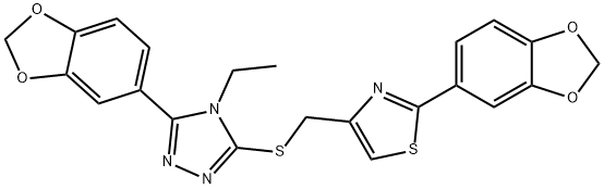 - Synonyms: 2-(1,3-benzodioxol-5-yl)-4-[[5-(1,3-benzodioxol-5-yl)-4-ethyl-1,2,4-triazol-3-yl]sulfanylmethyl]-1,3-thiazole 4H-1,2,4-Triazole, 3-(1,3-benzodioxol-5-yl)-5-[[[2-(1,3-benzodioxol-5-yl)-4-thiazolyl]methyl]thio]-4-ethyl-