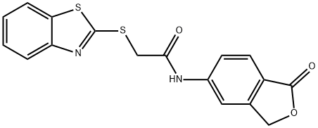 - Synonyms: 2-(1,3-benzothiazol-2-ylsulfanyl)-N-(1-oxo-3H-2-benzofuran-5-yl)acetamide Acetamide, 2-(2-benzothiazolylthio)-N-(1,3-dihydro-1-oxo-5-isobenzofuranyl)-