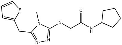 - Synonyms: N-cyclopentyl-2-[[4-methyl-5-(thiophen-2-ylmethyl)-1,2,4-triazol-3-yl]sulfanyl]acetamide Acetamide, N-cyclopentyl-2-[[4-methyl-5-(2-thienylmethyl)-4H-1,2,4-triazol-3-yl]thio]-