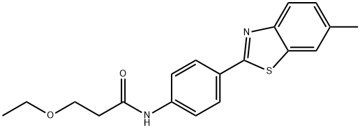 - Synonyms: 3-ethoxy-N-[4-(6-methyl-1,3-benzothiazol-2-yl)phenyl]propanamide Propanamide, 3-ethoxy-N-[4-(6-methyl-2-benzothiazolyl)phenyl]-