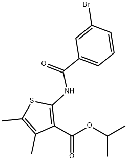 - Synonyms: propan-2-yl 2-[(3-bromobenzoyl)amino]-4,5-dimethylthiophene-3-carboxylate 3-Thiophenecarboxylic acid, 2-[(3-bromobenzoyl)amino]-4,5-dimethyl-, 1-methylethyl ester