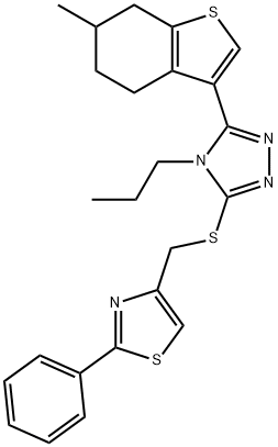 - Synonyms: 4-[[5-(6-methyl-4,5,6,7-tetrahydro-1-benzothiophen-3-yl)-4-propyl-1,2,4-triazol-3-yl]sulfanylmethyl]-2-phenyl-1,3-thiazole 4H-1,2,4-Triazole, 3-[[(2-phenyl-4-thiazolyl)methyl]thio]-4-propyl-5-(4,5,6,7-tetrahydro-6-methylbenzo[b]thien-3-yl)-