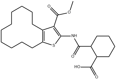 - Synonyms: 2-[(3-methoxycarbonyl-4,5,6,7,8,9,10,11,12,13-decahydrocyclododeca[b]thiophen-2-yl)carbamoyl]cyclohexane-1-carboxylic acid Cyclododeca[b]thiophene-3-carboxylic acid, 2-[[(2-carboxycyclohexyl)carbonyl]amino]-4,5,6,7,8,9,10,11,12,13-decahydro-, 3-methyl ester