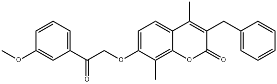 - Synonyms: 3-benzyl-7-[2-(3-methoxyphenyl)-2-oxoethoxy]-4,8-dimethylchromen-2-one 2H-1-Benzopyran-2-one, 7-[2-(3-methoxyphenyl)-2-oxoethoxy]-4,8-dimethyl-3-(phenylmethyl)-