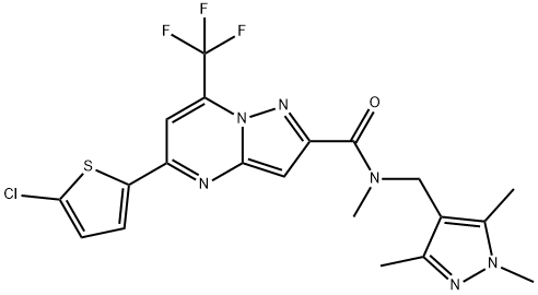- Synonyms: 5-(5-chlorothiophen-2-yl)-N-methyl-7-(trifluoromethyl)-N-[(1,3,5-trimethylpyrazol-4-yl)methyl]pyrazolo[1,5-a]pyrimidine-2-carboxamide Pyrazolo[1,5-a]pyrimidine-2-carboxamide, 5-(5-chloro-2-thienyl)-N-methyl-7-(trifluoromethyl)-N-[(1,3,5-trimethyl-1H-pyrazol-4-yl)methyl]-