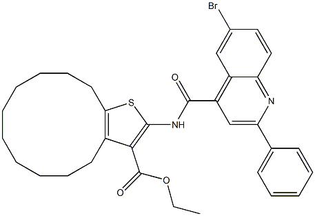 - Product Name:ethyl 2-[(6-bromo-2-phenylquinoline-4-carbonyl)amino]-4,5,6,7,8,9,10,11,12,13-decahydrocyclododeca[b]thiophene-3-carboxylate