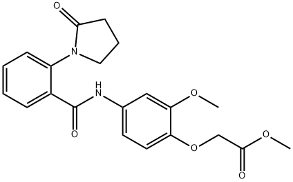 - Synonyms: methyl 2-[2-methoxy-4-[[2-(2-oxopyrrolidin-1-yl)benzoyl]amino]phenoxy]acetate Acetic acid, 2-[2-methoxy-4-[[2-(2-oxo-1-pyrrolidinyl)benzoyl]amino]phenoxy]-, methyl ester