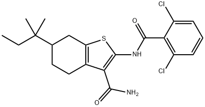 - Synonyms: 2-[(2,6-dichlorobenzoyl)amino]-6-(2-methylbutan-2-yl)-4,5,6,7-tetrahydro-1-benzothiophene-3-carboxamide Benzo[b]thiophene-3-carboxamide, 2-[(2,6-dichlorobenzoyl)amino]-6-(1,1-dimethylpropyl)-4,5,6,7-tetrahydro-