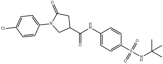 - Synonyms: N-[4-(tert-butylsulfamoyl)phenyl]-1-(4-chlorophenyl)-5-oxopyrrolidine-3-carboxamide 3-Pyrrolidinecarboxamide, 1-(4-chlorophenyl)-N-[4-[[(1,1-dimethylethyl)amino]sulfonyl]phenyl]-5-oxo-