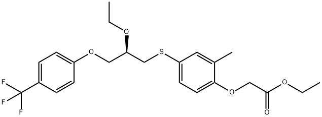 - Synonyms: (R)-{4-[2-Ethoxy-3-(4-trifluoromethyl-phenoxy)-propylsulfanyl]-2-methyl-phenoxy}-acetic acid ethyl ester Acetic acid, 2-[4-[[(2R)-2-ethoxy-3-[4-(trifluoromethyl)phenoxy]propyl]thio]-2-methylphenoxy]-, ethyl ester Seladelpar Impurity 3 Soradespa Impurity