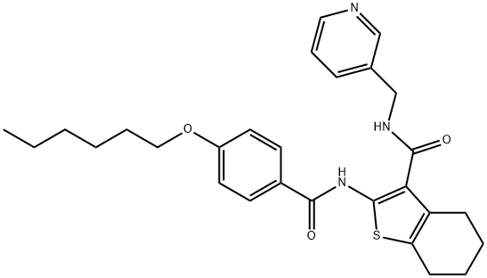 - Synonyms: 2-{[4-(hexyloxy)benzoyl]amino}-N-(3-pyridinylmethyl)-4,5,6,7-tetrahydro-1-benzothiophene-3-carboxamide Benzo[b]thiophene-3-carboxamide, 2-[[4-(hexyloxy)benzoyl]amino]-4,5,6,7-tetrahydro-N-(3-pyridinylmethyl)-