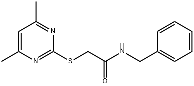 - Synonyms: Acetamide, 2-[(4,6-dimethyl-2-pyrimidinyl)thio]-N-(phenylmethyl)- N-benzyl-2-(4,6-dimethylpyrimidin-2-yl)sulfanylacetamide N-BENZYL-2-((4,6-DIMETHYL-2-PYRIMIDINYL)THIO)ACETAMIDE