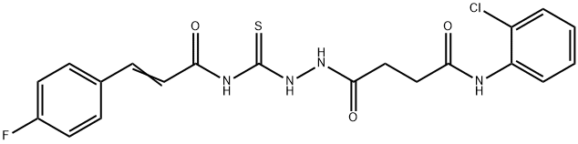 - Synonyms: N-[(2-{4-[(2-chlorophenyl)amino]-4-oxobutanoyl}hydrazino)carbonothioyl]-3-(4-fluorophenyl)acrylamide N-(2-chlorophenyl)-4-(2-{[(2E)-3-(4-fluorophenyl)prop-2-enoyl]carbamothioyl}hydrazinyl)-4-oxobutanamide Butanoic acid, 4-[(2-chlorophenyl)amino]-4-oxo-, 2-[[[3-(4-fluorophenyl)-1-oxo-2-propen-1-yl]amino]thioxomethyl]hydrazide