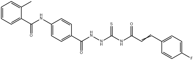 - Synonyms: N-(4-{[2-({[3-(4-fluorophenyl)acryloyl]amino}carbonothioyl)hydrazino]carbonyl}phenyl)-2-methylbenzamide N-{4-[(2-{[(2E)-3-(4-fluorophenyl)prop-2-enoyl]carbamothioyl}hydrazinyl)carbonyl]phenyl}-2-methylbenzamide Benzoic acid, 4-[(2-methylbenzoyl)amino]-, 2-[[[3-(4-fluorophenyl)-1-oxo-2-propen-1-yl]amino]thioxomethyl]hydrazide