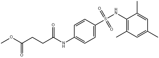 - Synonyms: methyl 4-({4-[(mesitylamino)sulfonyl]phenyl}amino)-4-oxobutanoate Butanoic acid, 4-oxo-4-[[4-[[(2,4,6-trimethylphenyl)amino]sulfonyl]phenyl]amino]-, methyl ester