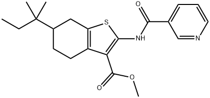 - Synonyms: methyl 6-(2-methylbutan-2-yl)-2-(pyridine-3-carbonylamino)-4,5,6,7-tetrahydro-1-benzothiophene-3-carboxylate Benzo[b]thiophene-3-carboxylic acid, 6-(1,1-dimethylpropyl)-4,5,6,7-tetrahydro-2-[(3-pyridinylcarbonyl)amino]-, methyl ester