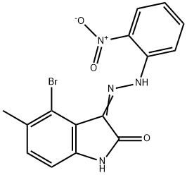 - Synonyms: (3E)-4-bromo-5-methyl-3-[2-(2-nitrophenyl)hydrazinylidene]-1,3-dihydro-2H-indol-2-one 4-bromo-5-methyl-3-[(2-nitrophenyl)hydrazono]-1,3-dihydro-2H-indol-2-one 1H-Indole-2,3-dione, 4-bromo-5-methyl-, 3-[2-(2-nitrophenyl)hydrazone]