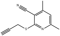 - Synonyms: 4,6-dimethyl-2-(2-propyn-1-ylsulfanyl)nicotinonitrile 4,6-dimethyl-2-(prop-2-yn-1-ylsulfanyl)pyridine-3-carbonitrile 3-Pyridinecarbonitrile, 4,6-dimethyl-2-(2-propyn-1-ylthio)-