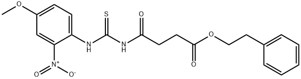 - Synonyms: 2-phenylethyl 4-({[(4-methoxy-2-nitrophenyl)amino]carbonothioyl}amino)-4-oxobutanoate Butanoic acid, 4-[[[(4-methoxy-2-nitrophenyl)amino]thioxomethyl]amino]-4-oxo-, 2-phenylethyl ester