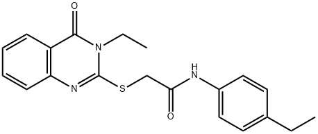 - Synonyms: 2-[(3-ethyl-4-oxo-3,4-dihydroquinazolin-2-yl)sulfanyl]-N-(4-ethylphenyl)acetamide Acetamide, 2-[(3-ethyl-3,4-dihydro-4-oxo-2-quinazolinyl)thio]-N-(4-ethylphenyl)-