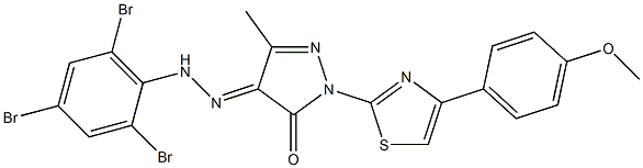 - Product Name:2-[4-(4-methoxyphenyl)-1,3-thiazol-2-yl]-5-methyl-4-[(2,4,6-tribromophenyl)hydrazono]-2,4-dihydro-3H-pyrazol-3-one