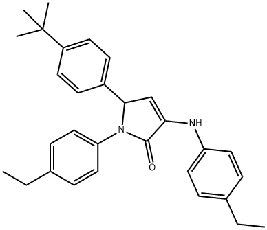 - Synonyms: 5-(4-tert-butylphenyl)-1-(4-ethylphenyl)-3-[(4-ethylphenyl)amino]-1,5-dihydro-2H-pyrrol-2-one 2H-Pyrrol-2-one, 5-[4-(1,1-dimethylethyl)phenyl]-1-(4-ethylphenyl)-3-[(4-ethylphenyl)amino]-1,5-dihydro-