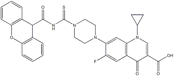 - Synonyms: 7-(4-((9H-xanthene-9-carbonyl)carbamothioyl)piperazin-1-yl)-1-cyclopropyl-6-fluoro-4-oxo-1,4-dihydroquinoline-3-carboxylic acid