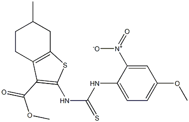 - Product Name:methyl 2-(3-(4-methoxy-2-nitrophenyl)thioureido)-6-methyl-4,5,6,7-tetrahydrobenzo[b]thiophene-3-carboxylate