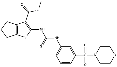- Synonyms: methyl 2-(3-(3-(morpholinosulfonyl)phenyl)thioureido)-5,6-dihydro-4H-cyclopenta[b]thiophene-3-carboxylate 4H-Cyclopenta[b]thiophene-3-carboxylic acid, 5,6-dihydro-2-[[[[3-(4-morpholinylsulfonyl)phenyl]amino]thioxomethyl]amino]-, methyl ester