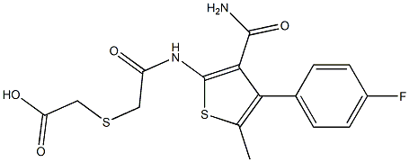 - Synonyms: 2-((2-((3-carbamoyl-4-(4-fluorophenyl)-5-methylthiophen-2-yl)amino)-2-oxoethyl)thio)acetic acid