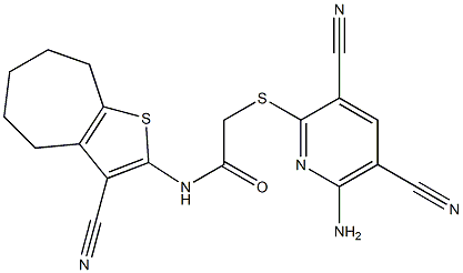 - Synonyms: 2-(6-amino-3,5-dicyanopyridin-2-yl)sulfanyl-N-(3-cyano-5,6,7,8-tetrahydro-4H-cyclohepta[b]thiophen-2-yl)acetamide