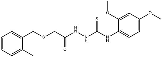 - Synonyms: 1-(2,4-dimethoxyphenyl)-3-[[2-[(2-methylphenyl)methylsulfanyl]acetyl]amino]thiourea Acetic acid, 2-[[(2-methylphenyl)methyl]thio]-, 2-[[(2,4-dimethoxyphenyl)amino]thioxomethyl]hydrazide