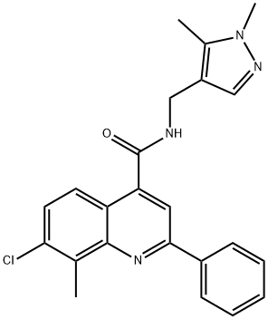 - Synonyms: 7-chloro-N-[(1,5-dimethylpyrazol-4-yl)methyl]-8-methyl-2-phenylquinoline-4-carboxamide 4-Quinolinecarboxamide, 7-chloro-N-[(1,5-dimethyl-1H-pyrazol-4-yl)methyl]-8-methyl-2-phenyl-