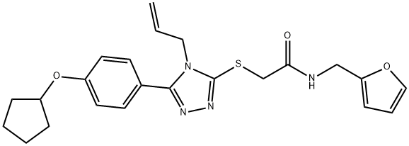 - Synonyms: 2-[[5-(4-cyclopentyloxyphenyl)-4-prop-2-enyl-1,2,4-triazol-3-yl]sulfanyl]-N-(furan-2-ylmethyl)acetamide Acetamide, 2-[[5-[4-(cyclopentyloxy)phenyl]-4-(2-propen-1-yl)-4H-1,2,4-triazol-3-yl]thio]-N-(2-furanylmethyl)-