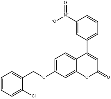 - Synonyms: 7-[(2-chlorophenyl)methoxy]-4-(3-nitrophenyl)chromen-2-one 2H-1-Benzopyran-2-one, 7-[(2-chlorophenyl)methoxy]-4-(3-nitrophenyl)- 7-((2-CHLOROBENZYL)OXY)-4-(3-NITROPHENYL)-2H-CHROMEN-2-ONE