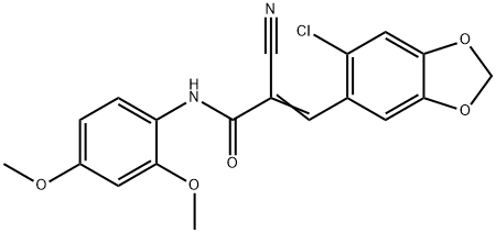 - Synonyms: (E)-3-(6-chloro-1,3-benzodioxol-5-yl)-2-cyano-N-(2,4-dimethoxyphenyl)prop-2-enamide 2-Propenamide, 3-(6-chloro-1,3-benzodioxol-5-yl)-2-cyano-N-(2,4-dimethoxyphenyl)-