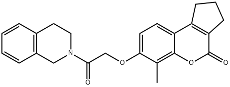 - Synonyms: 7-[2-(3,4-dihydro-1H-isoquinolin-2-yl)-2-oxoethoxy]-6-methyl-2,3-dihydro-1H-cyclopenta[c]chromen-4-one Cyclopenta[c][1]benzopyran-4(1H)-one, 7-[2-(3,4-dihydro-2(1H)-isoquinolinyl)-2-oxoethoxy]-2,3-dihydro-6-methyl-