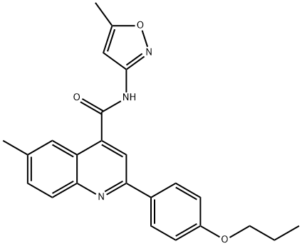 - Synonyms: 6-methyl-N-(5-methyl-1,2-oxazol-3-yl)-2-(4-propoxyphenyl)quinoline-4-carboxamide 4-Quinolinecarboxamide, 6-methyl-N-(5-methyl-3-isoxazolyl)-2-(4-propoxyphenyl)-