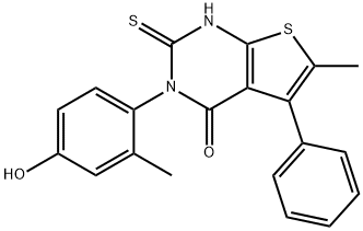 - Synonyms: 3-(4-hydroxy-2-methylphenyl)-6-methyl-5-phenyl-2-sulfanylidene-1H-thieno[2,3-d]pyrimidin-4-one Thieno[2,3-d]pyrimidin-4(1H)-one, 2,3-dihydro-3-(4-hydroxy-2-methylphenyl)-6-methyl-5-phenyl-2-thioxo-