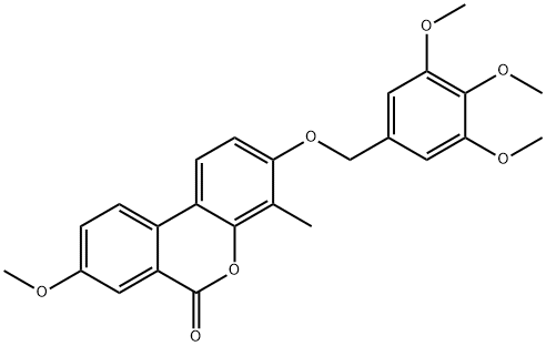 - Synonyms: 8-methoxy-4-methyl-3-[(3,4,5-trimethoxyphenyl)methoxy]benzo[c]chromen-6-one 6H-Dibenzo[b,d]pyran-6-one, 8-methoxy-4-methyl-3-[(3,4,5-trimethoxyphenyl)methoxy]-