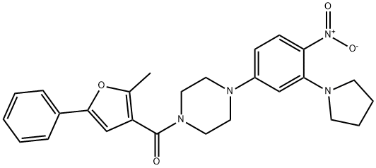 - Synonyms: (2-methyl-5-phenylfuran-3-yl)-[4-(4-nitro-3-pyrrolidin-1-ylphenyl)piperazin-1-yl]methanone Methanone, (2-methyl-5-phenyl-3-furanyl)[4-[4-nitro-3-(1-pyrrolidinyl)phenyl]-1-piperazinyl]-