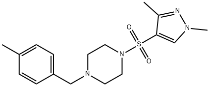- Synonyms: 1-(1,3-dimethylpyrazol-4-yl)sulfonyl-4-[(4-methylphenyl)methyl]piperazine Piperazine, 1-[(1,3-dimethyl-1H-pyrazol-4-yl)sulfonyl]-4-[(4-methylphenyl)methyl]-