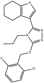 - Synonyms: 3-[(2-chloro-6-fluorophenyl)methylsulfanyl]-4-propyl-5-(4,5,6,7-tetrahydro-1-benzothiophen-3-yl)-1,2,4-triazole 4H-1,2,4-Triazole, 3-[[(2-chloro-6-fluorophenyl)methyl]thio]-4-propyl-5-(4,5,6,7-tetrahydrobenzo[b]thien-3-yl)-