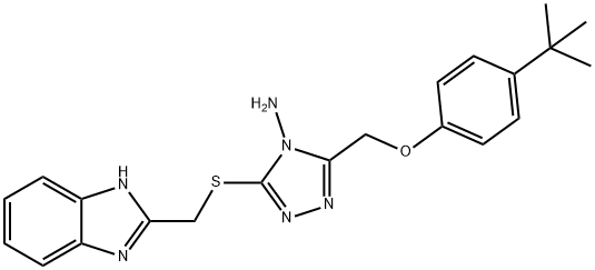 - Synonyms: 3-(1H-benzimidazol-2-ylmethylsulfanyl)-5-[(4-tert-butylphenoxy)methyl]-1,2,4-triazol-4-amine 4H-1,2,4-Triazol-4-amine, 3-[(1H-benzimidazol-2-ylmethyl)thio]-5-[[4-(1,1-dimethylethyl)phenoxy]methyl]-