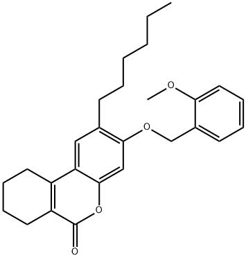 - Synonyms: 2-hexyl-3-[(2-methoxyphenyl)methoxy]-7,8,9,10-tetrahydrobenzo[c]chromen-6-one 6H-Dibenzo[b,d]pyran-6-one, 2-hexyl-7,8,9,10-tetrahydro-3-[(2-methoxyphenyl)methoxy]-