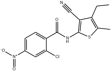 - Synonyms: Benzamide, 2-chloro-N-(3-cyano-4-ethyl-5-methyl-2-thienyl)-4-nitro- 2-chloro-N-(3-cyano-4-ethyl-5-methylthiophen-2-yl)-4-nitrobenzamide