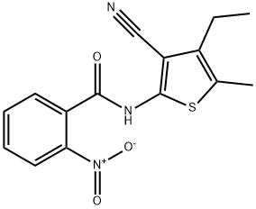 - Synonyms: N-(3-cyano-4-ethyl-5-methylthiophen-2-yl)-2-nitrobenzamide Benzamide, N-(3-cyano-4-ethyl-5-methyl-2-thienyl)-2-nitro-